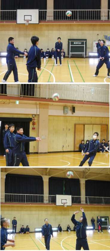 今日の午後は、2年生の球技大会でした。体育館でのバレーボールです。各学級男女別に3チームに分かれての対戦です。ルールも緩和されていて楽しめるようになっています。