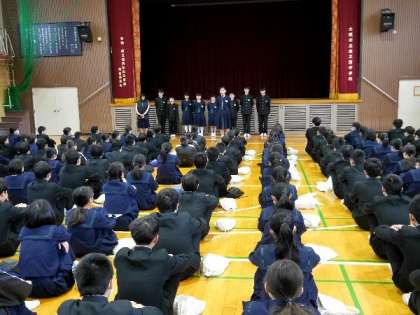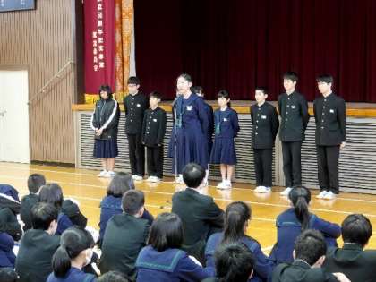 東北ボランティア研修へ!全校集会でJrリーダーがお願い