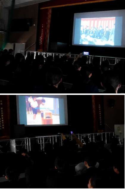 3年生が、入学からの写真をまとめて、思いでのビデオを係の生徒たちが作りました。全員でビデオをみて、中学校生活を振り返りました。
