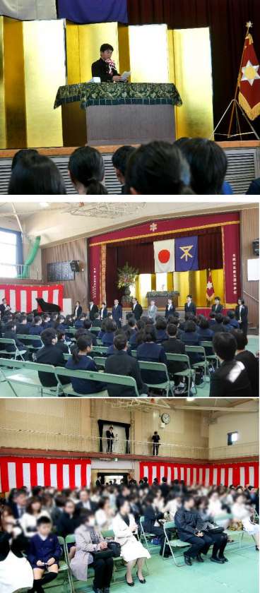 入学式では、校長先生からのお話や、在校生代表の歓迎のことば、新入生の誓いのことば、担任の先生や1年生の先生の紹介がありました。