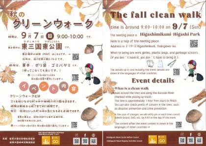 新東三国地域にてクリーンウォークが9月7日(日)に行われます。本校からも14人の生徒が参加します。9時より東三国東公園集合で行われます。