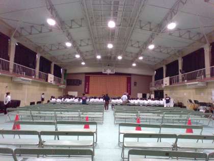 2年生の学年集会の様子です。いよいよ明日が文化発表会本番になります。当日の座席を確認しておきましょう。今日休んでいる人の座席も確認して、明日教えてあげてください。