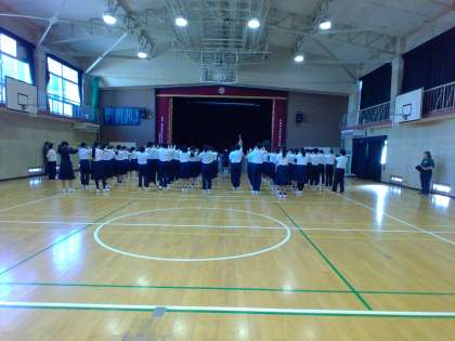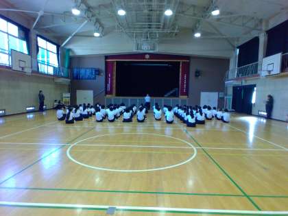 1年生の学年集会の様子です。後期学級代表が学年集会の司会をしてくれました。後期の学級代表は全員新任となりました。意欲的に立候補してくれ、また、前期の学級代表の人たちはサポートに回ってくれました。とてもうれしいことです。
