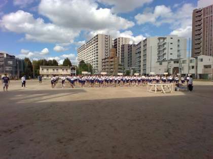 今日の5・6時間目、体育大会の全体練習1回目を行いました。朝早くから雨水をスポンジで吸い取ったりしてお昼から練習できるようにしました。今日は整列・行進、校歌の練習を行いました。31日(金)まで、すばらしい体育大会になるよう、頑張りましょう。