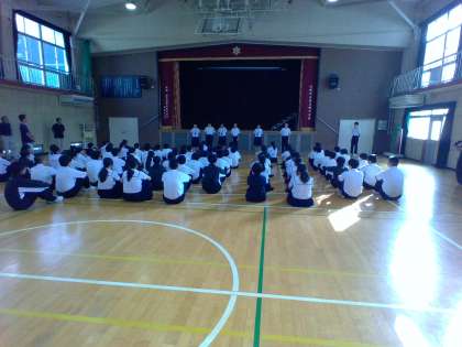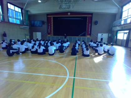 2年生の学年集会の様子です。各委員会から一昨日に行われた各種委員会で話し合った報告と連絡がありました。共通していたのが、「大きな声で」というフレーズです。挨拶など前に出てくれている当番の人が大きな声を出してくれていますので、しっかり大きな声で返してください。