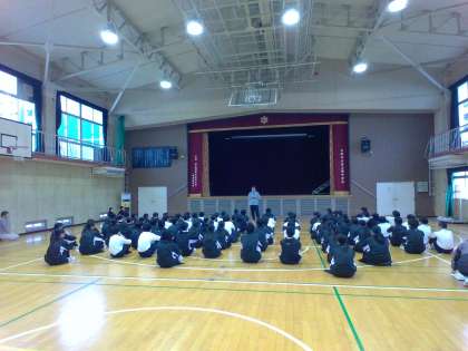 1年生の学年集会の様子です。今日の担当の先生から、他の学校の卒業生の話がありました。一生懸命努力をして、大きな成長をし、先生が見ても「かっこいい卒業生」と思えるようになっていた、とのことです。1年生の皆さんもこれからたくさんのつらいことがあるでしょうが、乗り越えることで大きく成長します、とのお話でした。