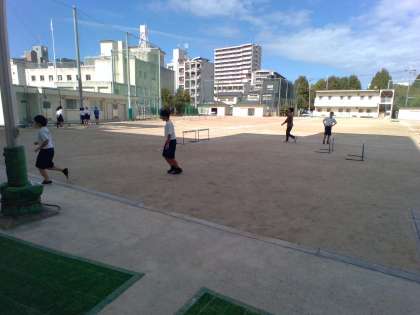 1年生の体育の授業の様子です。自分が体育大会で出場する種目の練習をしています。
