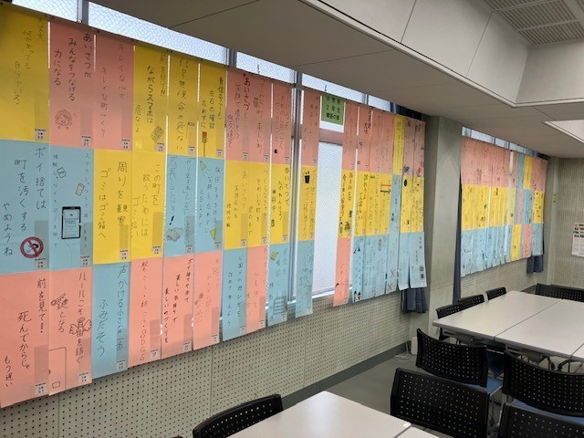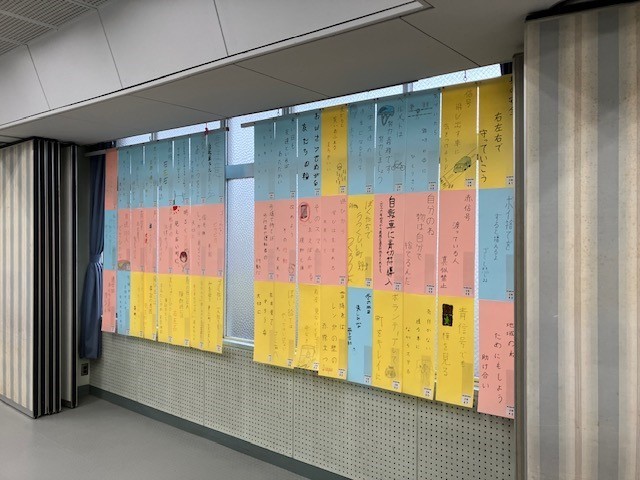 12月21日(日)、中学校の隣にある東三国センターにて東三国地域青少年を守る会「青少年の健全育成ポスター・標語」の掲示作業をPTAの方々にしていただきました。東三国小学校からは5・6年生から標語、東三国中学校からは1・2年生から標語、2年生からはポスターを作成しました。「明るい町づくり」をテーマに「東三国地域をよくする」作品がたくさん掲示されました。この中から、金賞・銀賞を東三国地域の方々にご覧いただいて決めていきます。2月末から3月にお伝えできると思います。保護者の皆様には、東三国センターに寄られるときにご覧ください。今年度は傾向として「かわいい」作品が多いです。