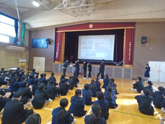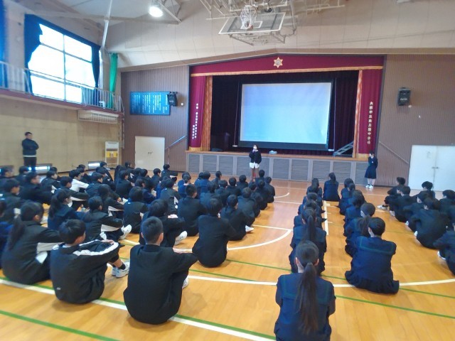 2学期最終日、各学年で学年集会を行いました。こちらは2年生の学年集会の様子です。15日間の冬休みです。それぞれ先生方から諸注意など話がありました。羽を伸ばすのもいいですが、やるべきことはしっかりやりましょう。また、家族で過ごす時間もたくさんあります。たくさん話をして、たくさんお手伝いもしてください。
