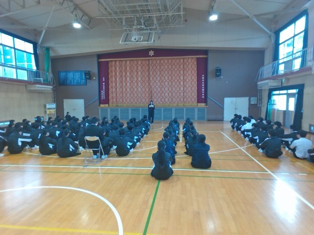 1月16日(金)の3年生学年集会の様子です。明日1月17日は1995年阪神・淡路大震災が起こった日です。あれから31年経ちました。学校へ通い、帰ると家があり、お家の人がいて、ご飯を食べることができるなど何気ない日常が一瞬で崩れました。そんな想像もできない出来事を、今日担当の先生から、西宮で中学校の教員をしていた方の手記から紹介してもらいました。「テレビやニュース、様々なメディアで当時の出来事や記録が伝えられると思います。いつ災害が起こるかという意識を持ってください。そして、今を大切に生きてください。」と話がありました。