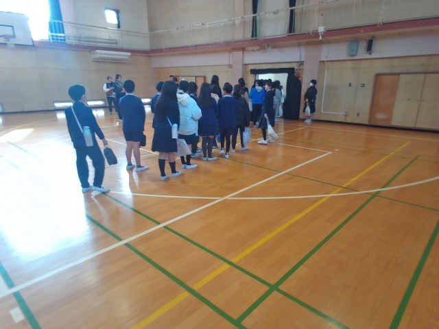 2月2日(月)14時より体育館にて、東三国小学校と新東三国小学校の6年生を迎えて、小中交流交歓会を行いました。中学校生活を迎えるにあたって、中学校はどんなところなのか、どんな授業をするのか、どんなクラブがあるのかを知ってもらう会となります。生徒会が司会や進行を行いました。最初に学校長より挨拶と、中学校へ入学する心構えを持っておいてほしい、と話がありました。その後、授業を受ける教室や会場へ移動しました。