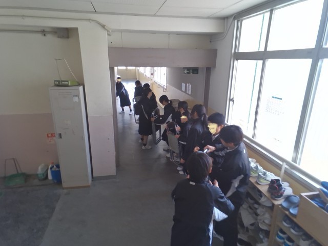 いよいよ今週金曜日が卒業式になります。今日の3・4時間目に会場の仮設営を2年生がしてくれました。2年生のみなさん、ありがとうございました。5・6時間目から卒業式の確認・練習を3年生は行っていきます。