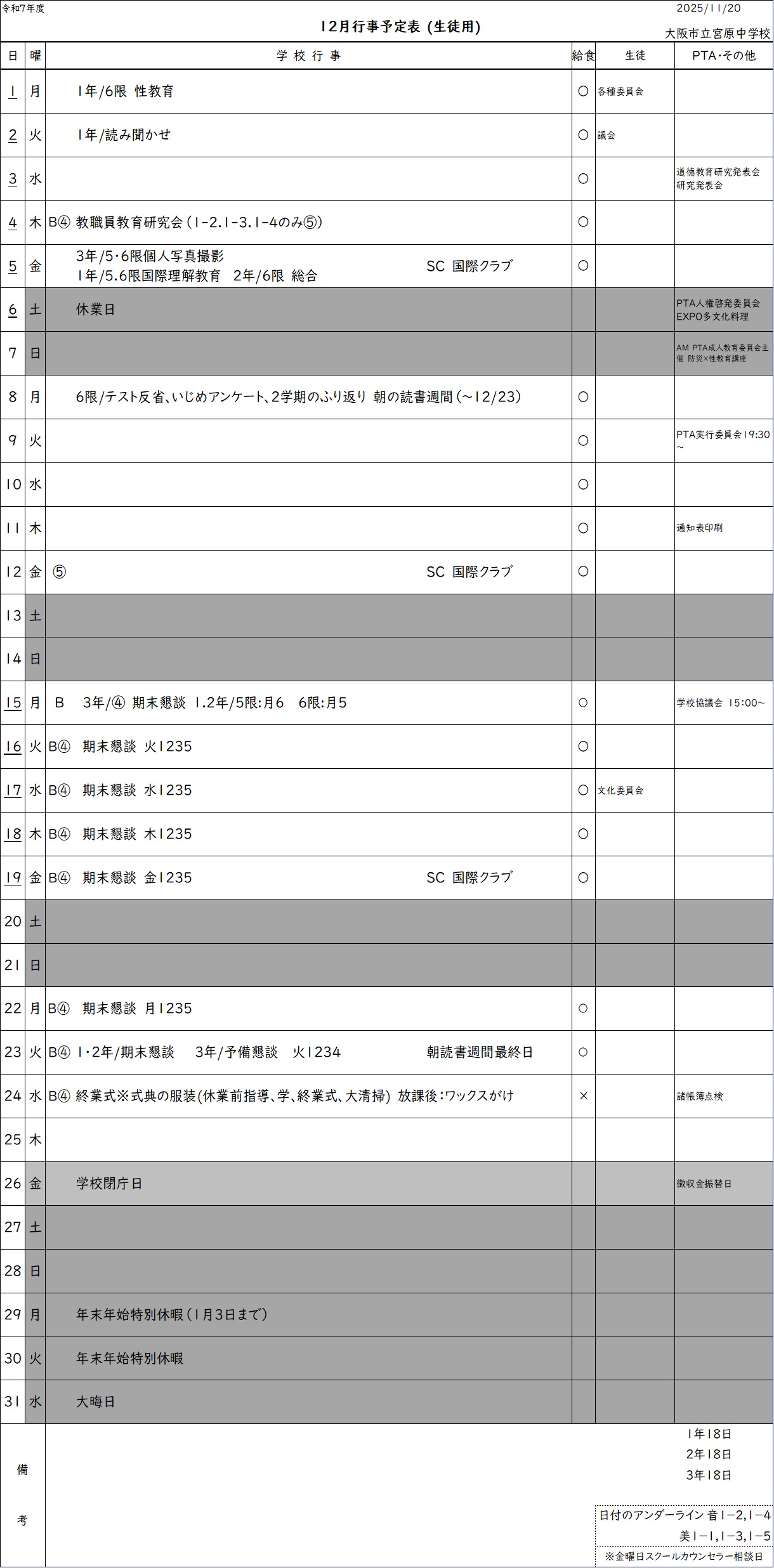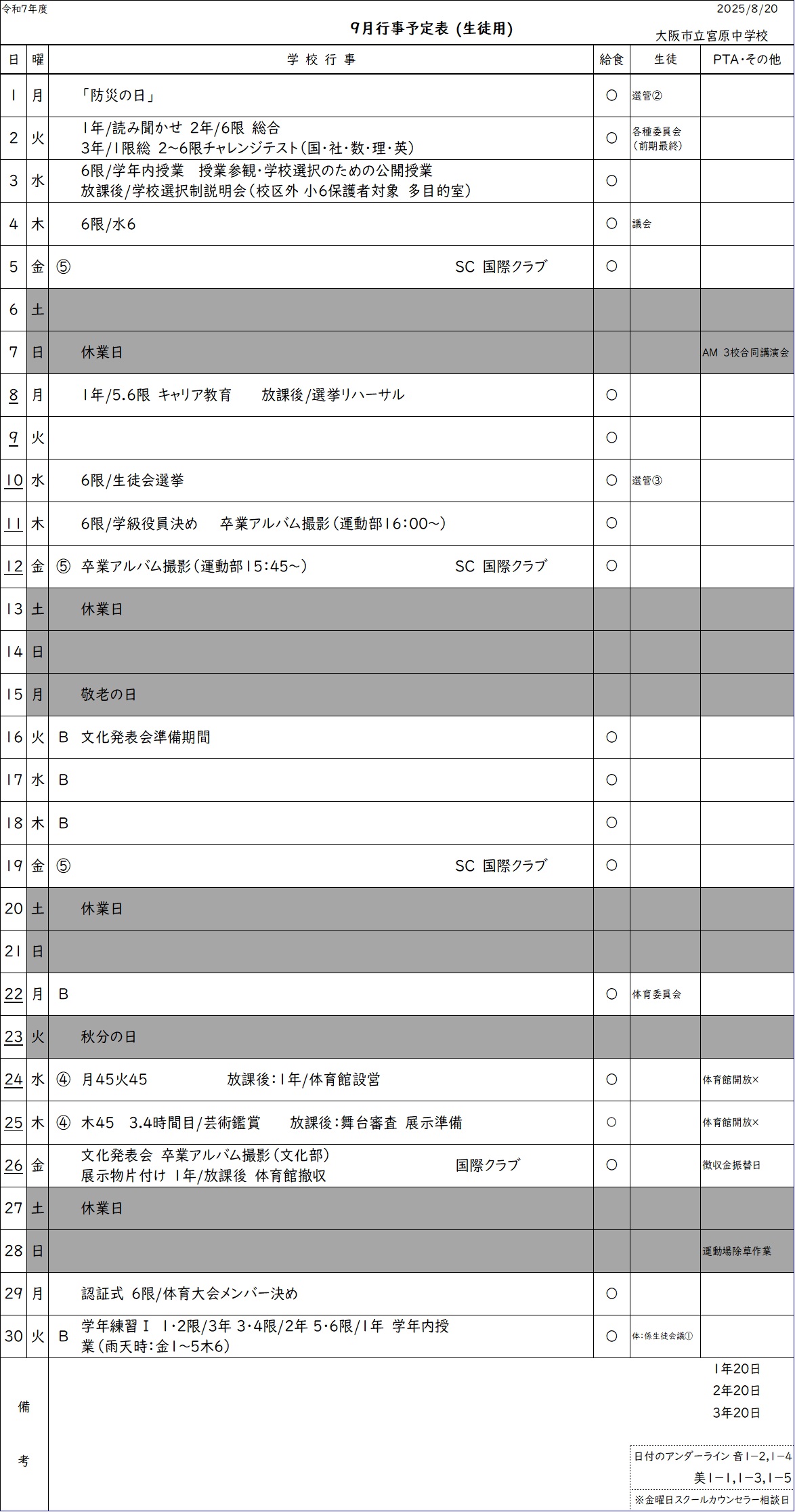 • 全校集会