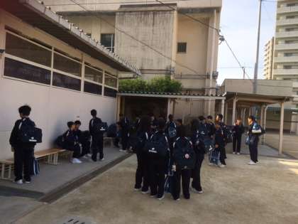 8時の集合ですが、早くも登校している1年生たちです。