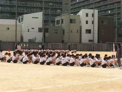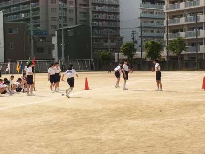 3年生は、体育大会に向けて、「全員リレー」の練習をしました。