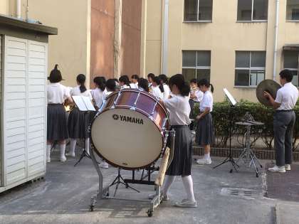 5月30日(木) 体育大会に向けて中庭で練習演奏です。
