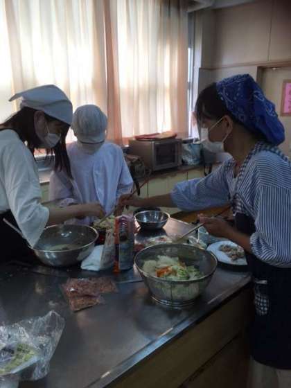 ふれあい友の会とPTA実行委員のみなさんで、平和学習をしたあと、焼きそばとたこ焼きを作りました。