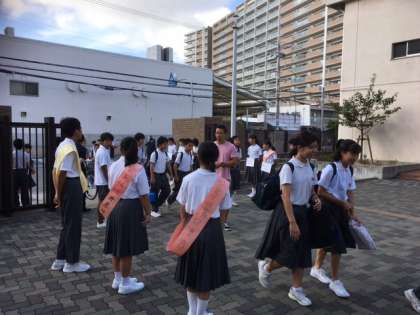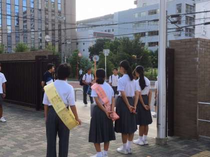 生徒会役員の立候補者が「朝のあいさつ」に参加しました。