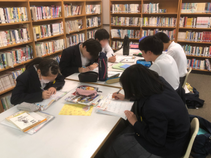 図書室で学校元気アップによるテスト前学習会を開催しています。