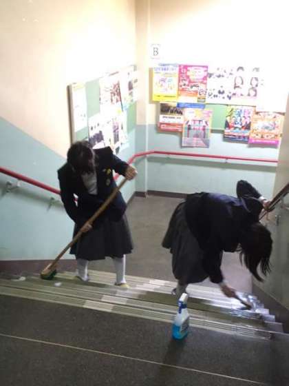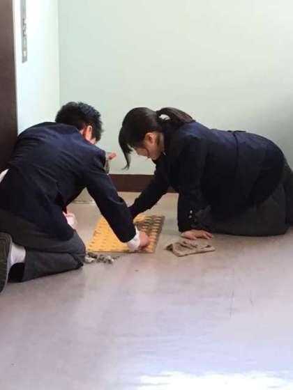 委員会終了後、1年、2年の美化委員で、階段や、点字ブロックを丁寧に清掃してくれました。