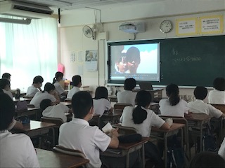 2年生は各教室で平和学習を行い、淀川区の作成した「命の物語」という【大阪大空襲】を題材にしたDVDを見ました。