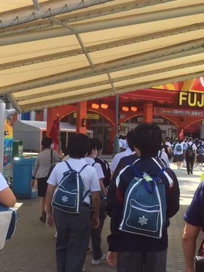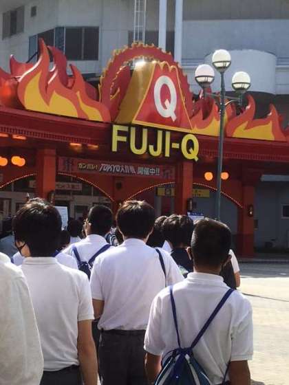ラフティングの中止に残念がるのもつかの間で、入場前からテンションマックスです。