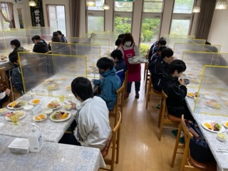 6時45分朝食です。子どもたちの様子は、全員揃ったところで確認します。
