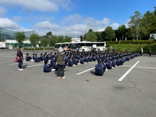 7時35分 河口湖畔の大月駐車場に集まっています。全員揃っています。