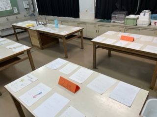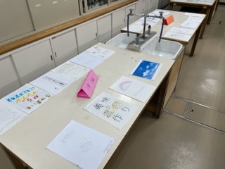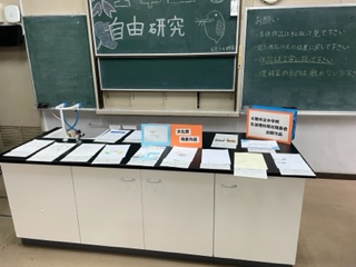 1階理科室では、1年生の理科夏休み自由研究の展示です。