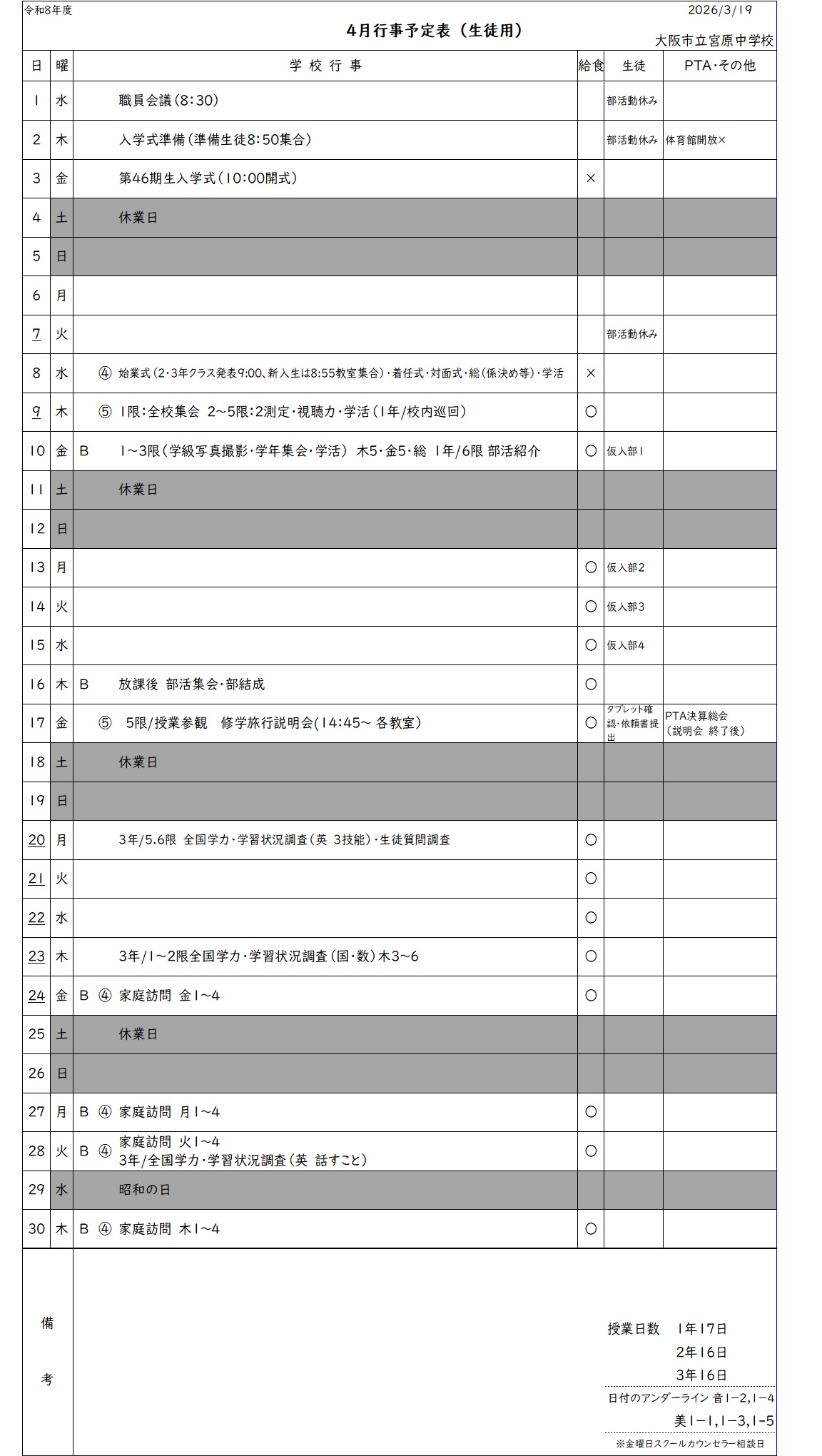 月行事予定