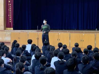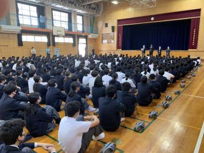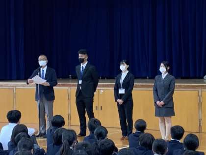 生徒指導主事の先生からは、「地域に出かけた時もマナーやルールを守って、迷惑をかけないようにしてほしい。」という話をしました。