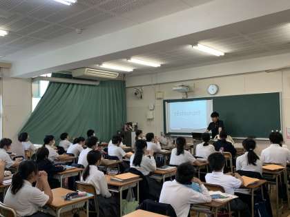 授業の導入で、フラシュカードをスクリーンに映し出し、英単語の確認をしました。
