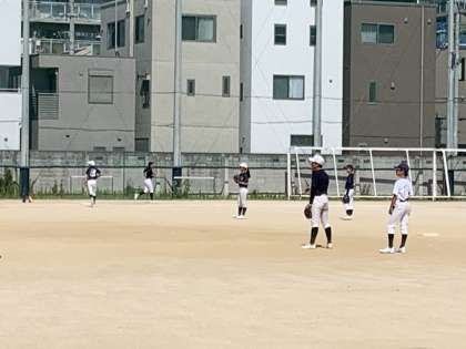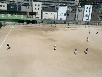 朝からグランドで、軟式野球部が練習しています。こまめな水分補給をしながら、暑さにも負けず、己に気合を入れています。
