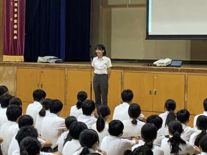 保健体育科の教育実習生が、今日から3週間にわたり2年1組の教室に入って学習します。本校の卒業生で、将来教職の道をめざしています。