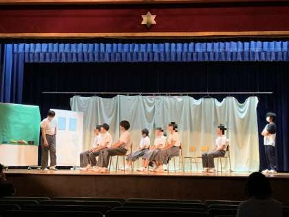 明日は、「3年合唱」「1・2年理科発表」「吹奏楽部」のリハーサルを行います。