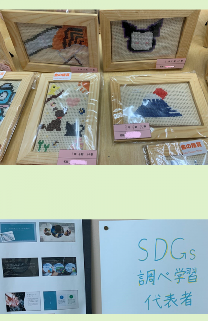 3年生はクロスステッチを作製し、SDGsについて調べ学習を行いました。