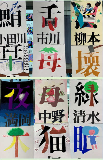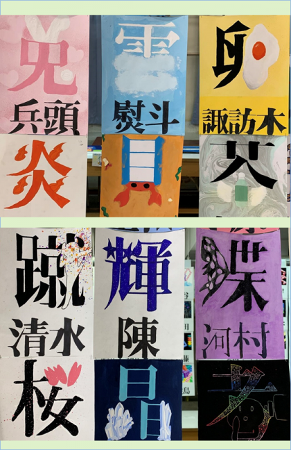 2年生は、漢字一文字をその漢字の意味にふさわしい形に変形して表現しました。