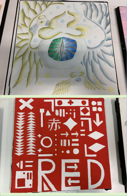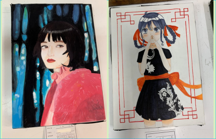 部員それぞれが得意とする画材や、挑戦してみたい画材を使って制作した絵画や立体作品を展示しました。日々取り組んできた力作です。