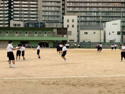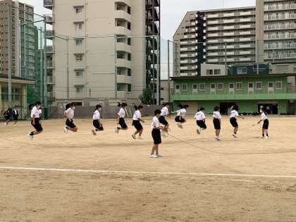 大縄跳びや二人三脚・リレーのバトン練習など、仲間と相談しあって意欲的に取り組んでいます。多くの生徒の「やる気」を感じました。