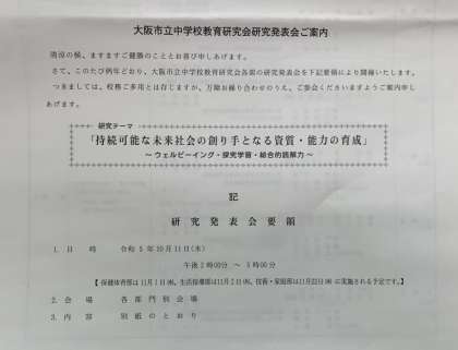 本日は大阪市内のすべての教員対象に研究発表会が開催されます。