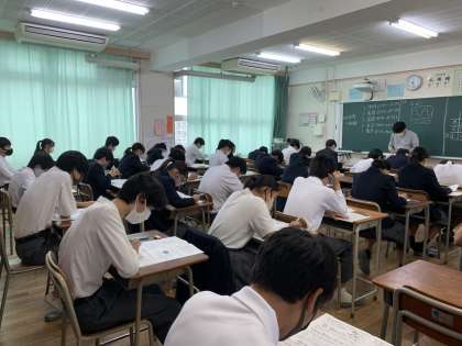 この2学期の実力テストの結果で、私立高校と公立特別入学者選抜の受験校がほぼ決まることもあり、生徒は真剣そのものでテストに挑んでいます。