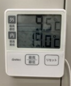 今朝の外気温は、9.5度と10度を下回りました。