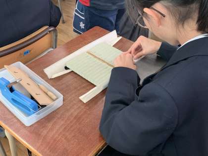 数種類の畳表と50種類以上のカラフルな畳縁を選んで、ミニ畳を作りました。