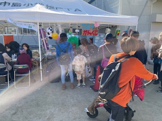 19日日曜日、北中島小学校にて北中島まつりがおこなわれ、本校PTAがブースを出していました。