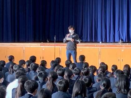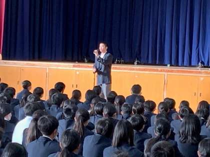 生徒指導主事の先生からは、校内での防寒着の着用の仕方と落とし物の預かりについて話がありました。