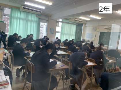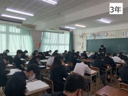 本日は、数学・社会と3限目は音楽(1‣2年)・英語(3年)を実施しました。