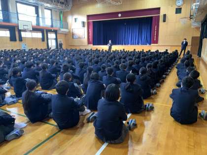 生徒指導主事の先生からは、成人式での卒業生との再会についての話がありました。どんな環境でも頑張り抜くことが大切であることを話されました。
