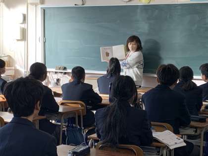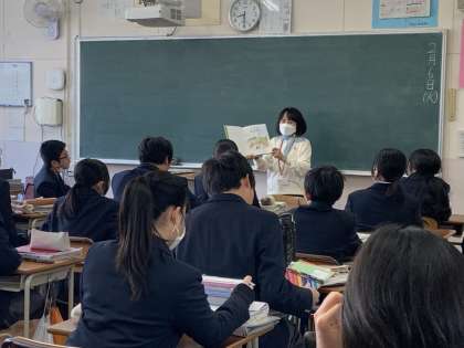 小学校からの継続した取り組みで、生徒は落ち着いて聴き入っています。
