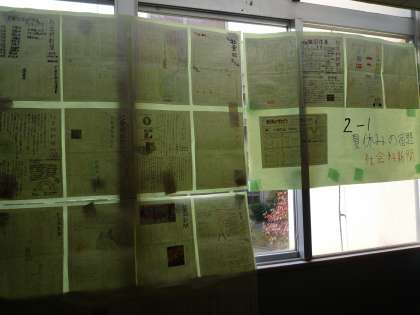 こちらは社会科の自由研究です。夏休みにあった事件や歴史分野、地理分野を一枚の新聞にまとめました。