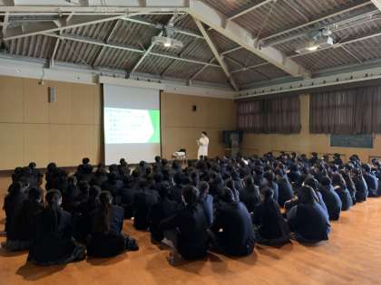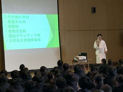 専願・併願について、私立高校・公立高校の特徴について、キャリア教育担当の先生から説明をしました。